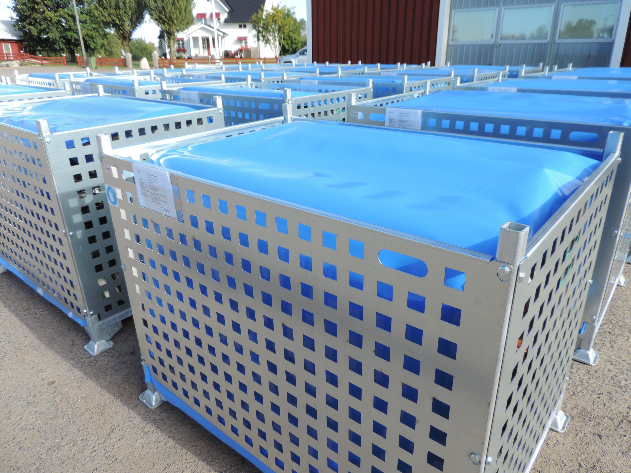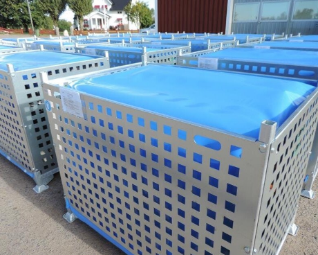 | Materialbedarf für den Aufbau eines Schutzwalls von 100 m Länge mit 1 m Stauhöhe. | 200 Europaletten, 350 m3 Sand 48 LKW, 8 Gabelstapler für den Transport und das abladen der Sandsäcke am Einsatzort. | 2 Transport / Lagerboxen INERO™ H100 mit den Abmessungen 1500x1000x1100 mm. Sind die Boxen am Einsatzort wird das System aus den Boxen heraus aufgebaut. |