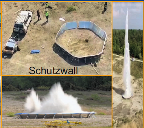 | Personalbedarf für den Aufbau eines Schutzwalls von 100 m Länge mit 1 m Stauhöhe. | 37 Personen plus 13 Ersatzkräfte, 5 Stunden Aufbauzeit, LKW und Gabelstapler für den Transport und abladen der Sandsäcke. 1 Gulaschkanone für die 50 Personen | 6 Personen, ca. 1 Stunde. Ist das INERO System am Einsatzort werden keine Hilfsmittel benötigt. |